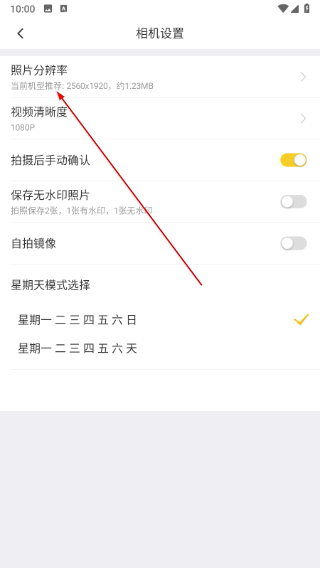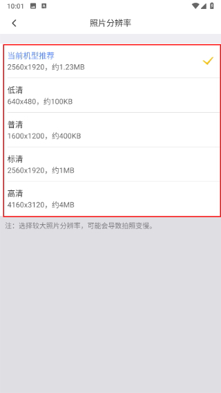 3、點擊照片分辨率選項,跳轉(zhuǎn)至分辨率選擇頁面。